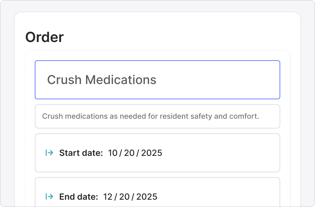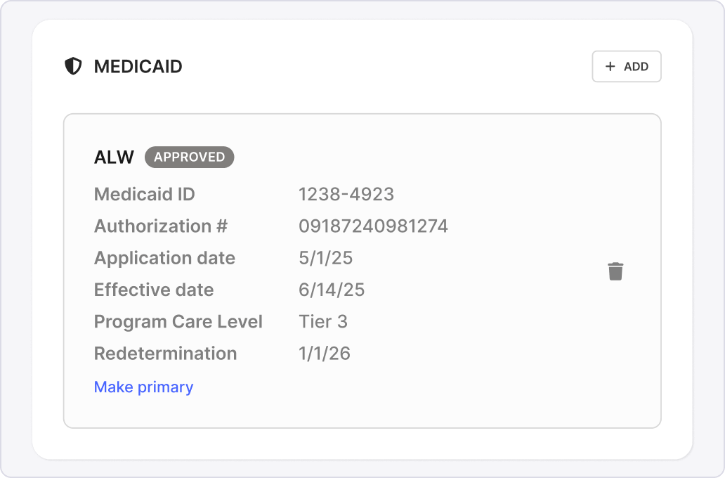 You can now add Medicaid as an insurance type on a resident’s Details tab. With quick setup from your Implementation Manager, you’ll be able to track program name, start and end dates, and program level/tier — making it simple to see which residents are enrolled. Coming soon: deeper Medicaid support in our Billing product.
