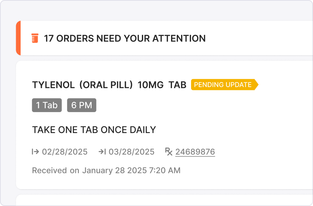 Orders are now alphabetized and displayed on collapsible cards, making it easier to scan quickly and spot potential duplicates. Use the Orders to Review toggle to focus only on new or updated items that need your attention.